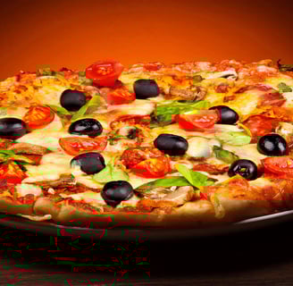 Stone-baked Base with Tomato Sause, Mozzarella, Turkey Ham, Italian Sausage and Chicken cubes